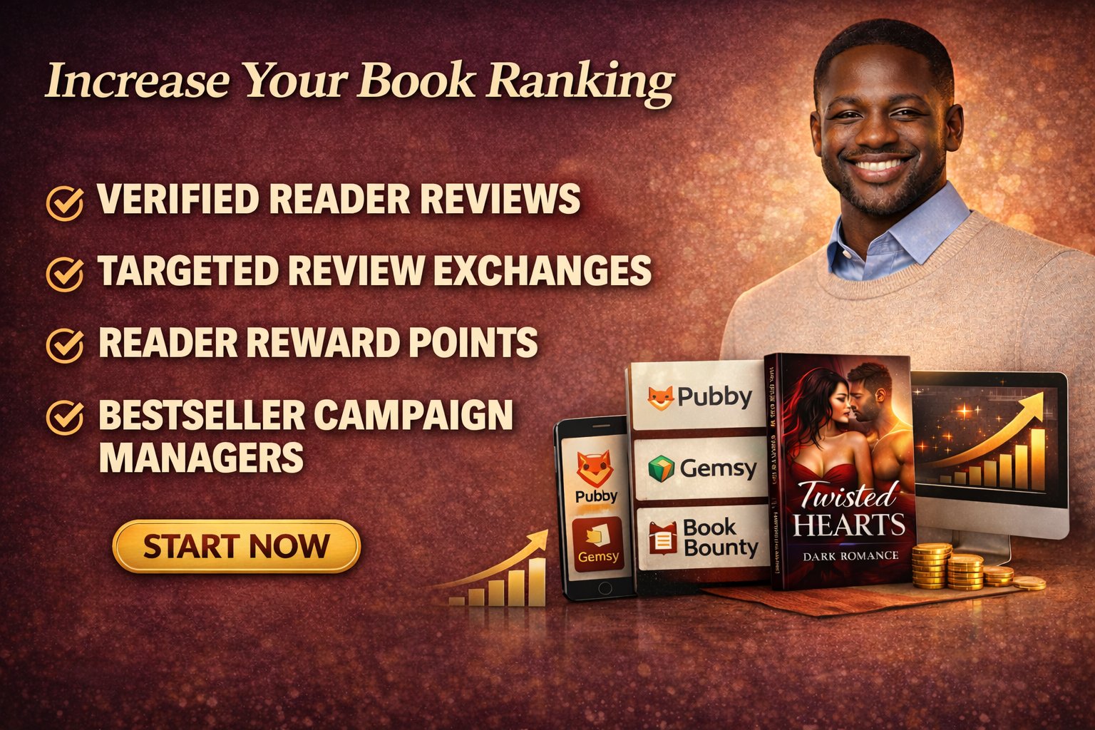 I use platforms like Pubby, Gemsy, and Book Bounty to increase your book’s activity and visibility. By strategically managing points and engagement on these sites, your book is shown to more readers, which signals to the Amazon algorithm that your book is "trending."